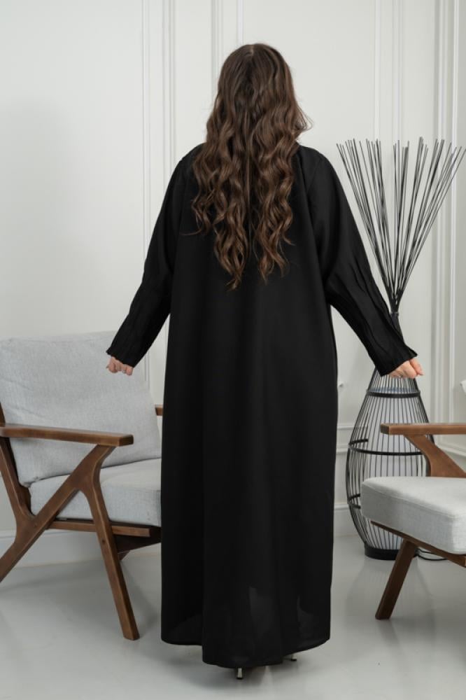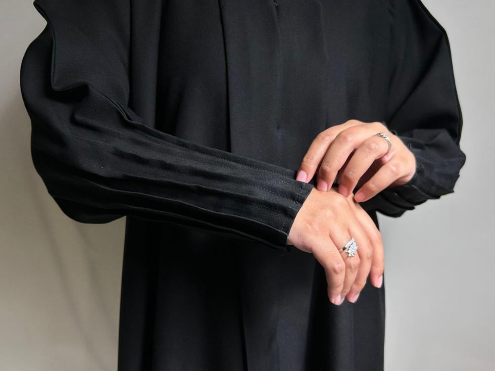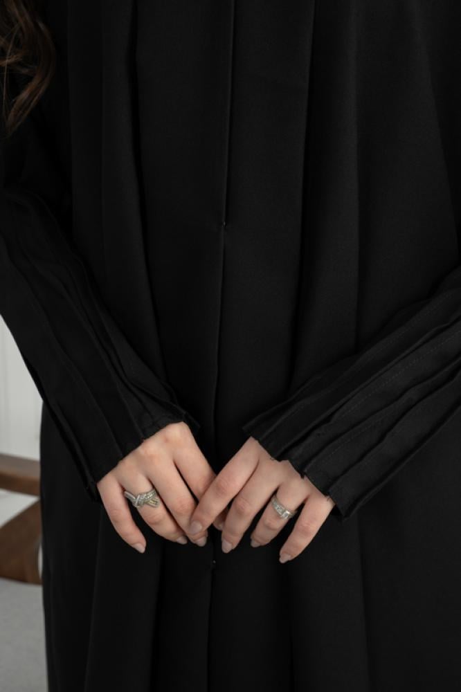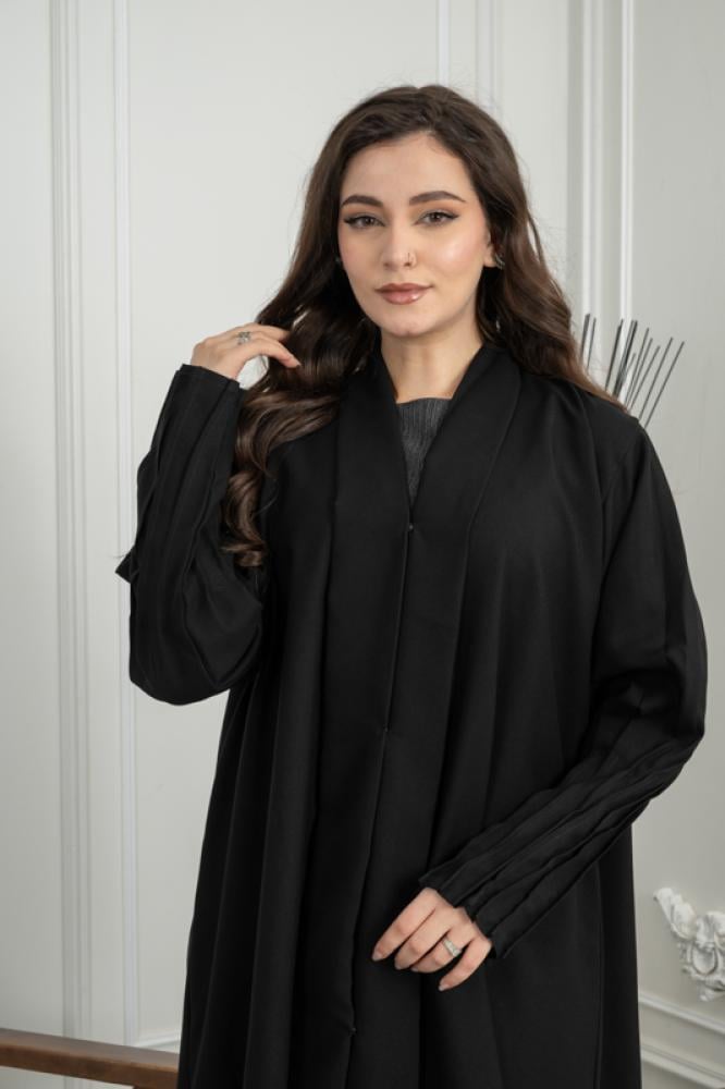 عباية سوداء ناعمة بتفاصيل راقية على الأكمام
