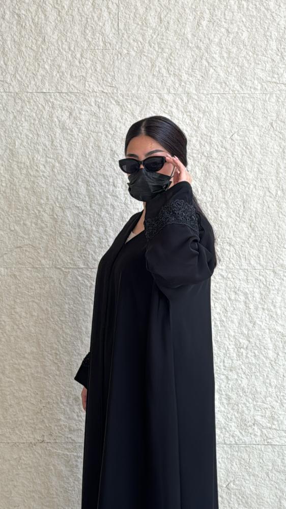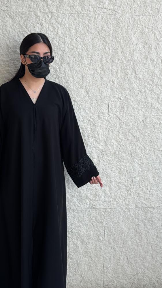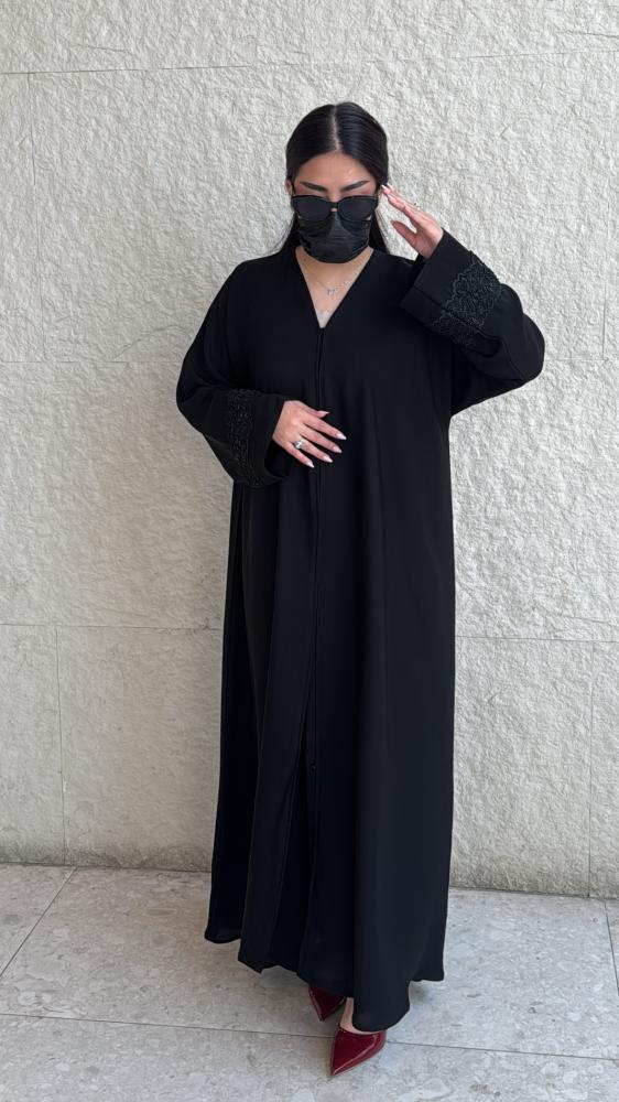 عباية سوداء بتطريز ناعم على الأكمام – لمسة فخامة يومية